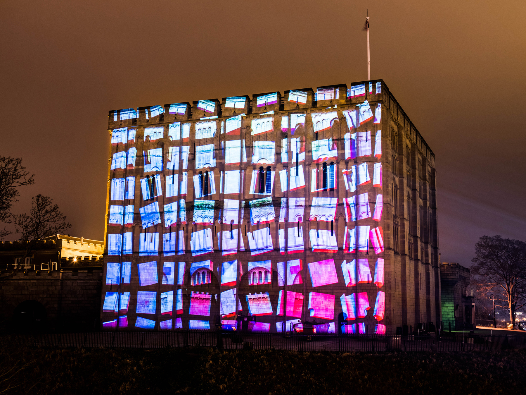 Following the success of the 2017 projections, NorwichBID looked for a solution to permanently site projection equipment so they could project onto Norwich castle’s façade at any time throughout the year.